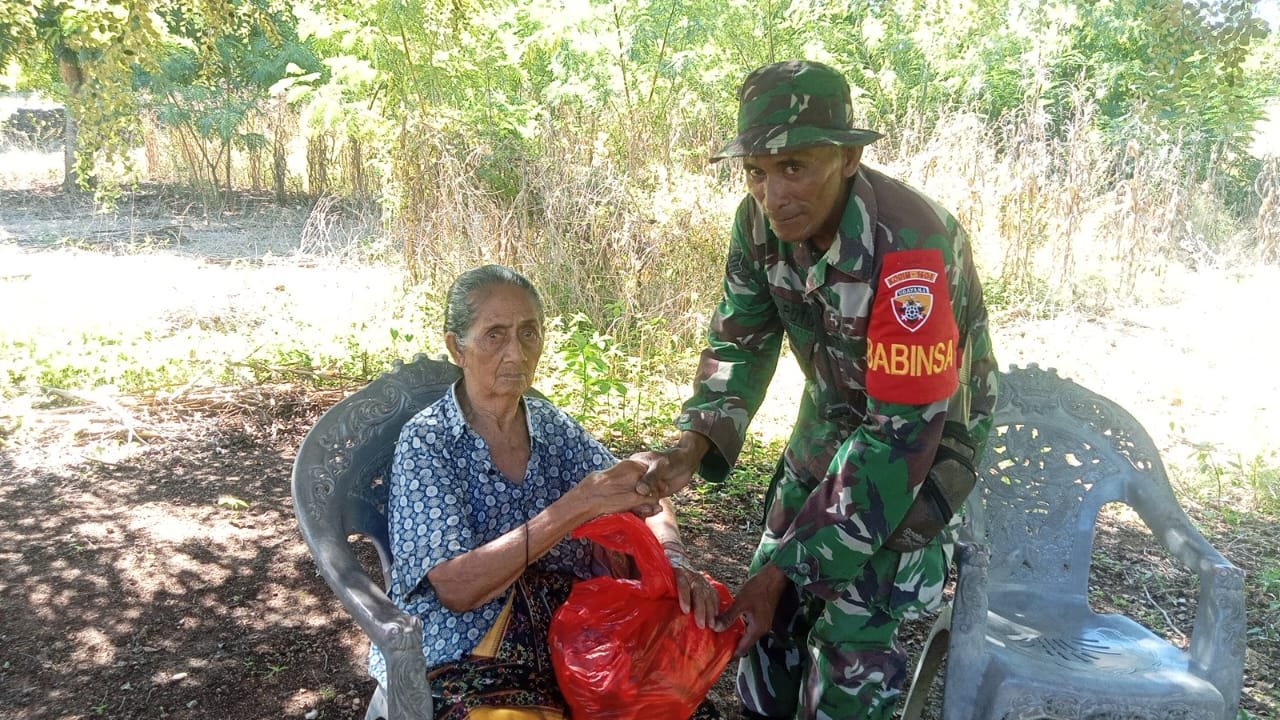 NTT-SEMAU — Dalam rangkaian kegiatan TNI Manunggal Membangun Desa (TMMD) ke-124, Kodim 1604/Kupang melalui jajaran Posramil Semau melaksanakan aksi sosial pembagian sembako kepada warga lanjut usia (lansia) di Desa Huilelot, Kecamatan Semau, Kabupaten Kupang. Kegiatan ini sebagai bentuk kepedulian TNI terhadap kesejahteraan masyarakat di wilayah sasaran TMMD. Rabu (14/05/2025).