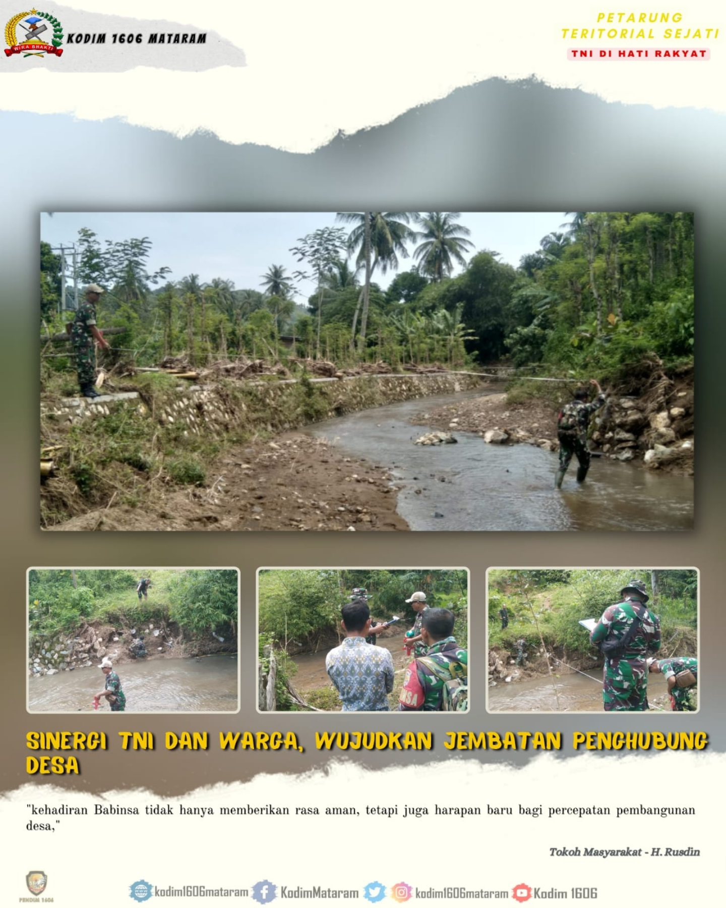 Kegiatan ini sejalan dengan arahan Presiden Republik Indonesia mengenai pentingnya pemerataan pembangunan di seluruh wilayah, termasuk desa-desa terpencil. Melalui peran Babinsa, Kodim 1606/Mataram bertekad untuk menjadi penggerak dalam mewujudkan kebutuhan rakyat, menjadikan kegiatan ini sebagai langkah awal untuk membangun jembatan yang akan memberikan dampak positif bagi kehidupan sosial dan ekonomi masyarakat Sekotong.
