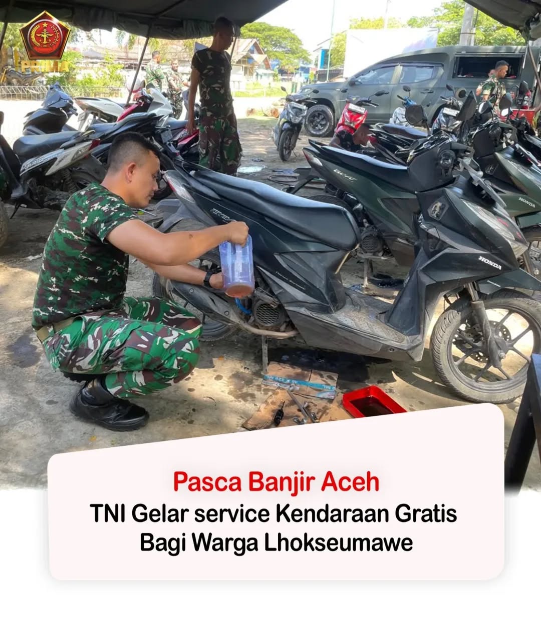 TNI Berikan Layanan Servis Kendaraan Gratis untuk Warga Lhokseumawe Pasca Banjir