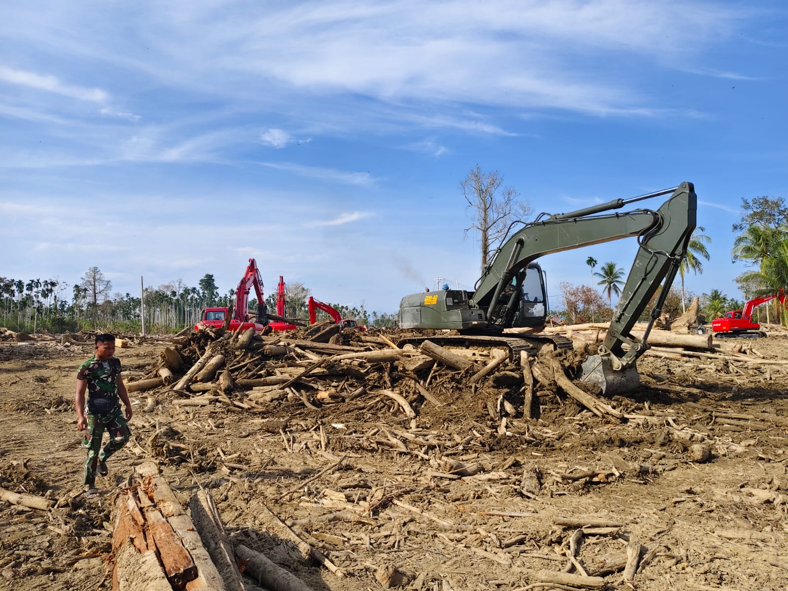 Pembersihan dilakukan setelah banjir menyebabkan penumpukan kayu dan material lainnya yang menghambat akses jalan vital bagi warga. Menggunakan alat berat seperti beko dan doser, tim yang terdiri dari berbagai unsur, termasuk Kementerian Kehutanan dan BNPB, bekerja sama untuk membuka jalur yang terhalang. Babinsa Koramil 29, Serda Fri Hardiansyah, hadir untuk mengawasi dan memastikan koordinasi antara semua pihak berjalan lancar.