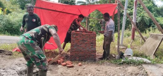 TNI dan Warga Desa Talio Lansir Besi untuk Cor Jalan dalam Kegiatan TMMD