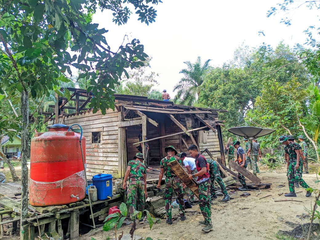 TNI dan Warga Gotong Royong Bongkar Rumah Tak Layak Huni di Desa Jamut