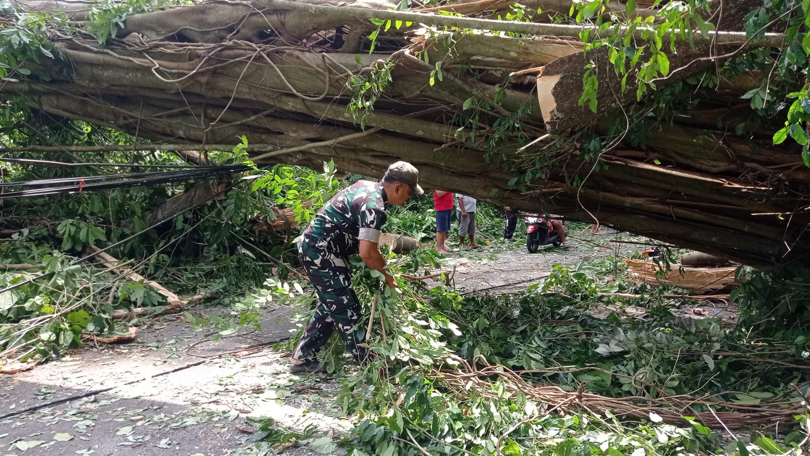 TNI dan Warga Sinergi Bersihkan Pohon Tumbang di Jalur Sea-Warembungan