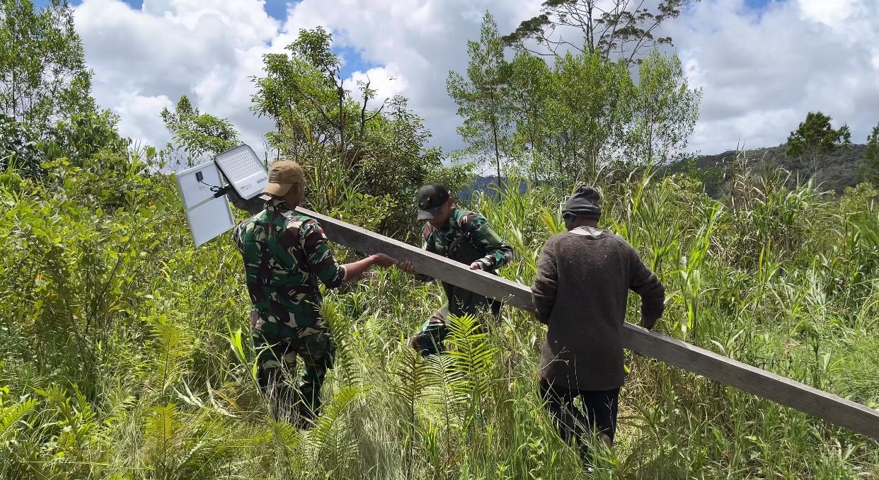Kampung Kutdol dan Polsam, Pegunungan Bintang — Pos Okpol Satgas Pamtas RI–PNG Yonif 751/Vira Jaya Sakti (VJS) melaksanakan program anjangsana dan pemasangan lampu penerangan pada Kamis, 8 Januari 2026. Kegiatan ini dilakukan untuk mempererat hubungan dengan masyarakat sekaligus meningkatkan keamanan lingkungan di malam hari.