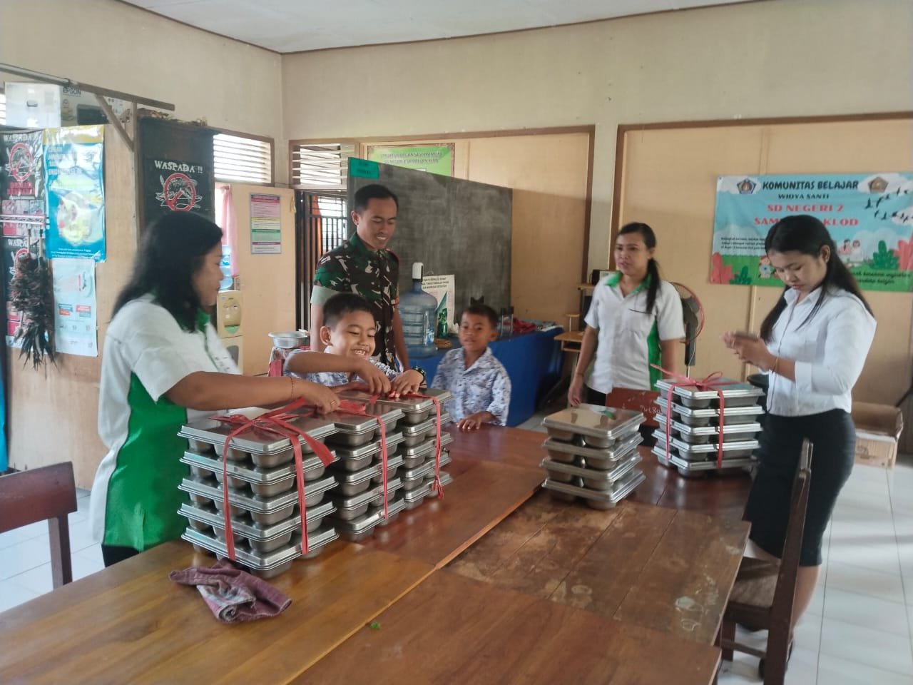 Konsistensi itupun terlihat saat Babinsa Sampakan Kelod Kopda Gede Angga turun langsung melaksanakan kegiatan pendampingan kegiatan Makan Bergizi Gratis ( MBG ) di SD Negeri 2 Sampalan Kelod bersama tim SPPG Klungkung Dawan Gunaksa serta para guru pengajar, Kamis ( 30/10/25 ).