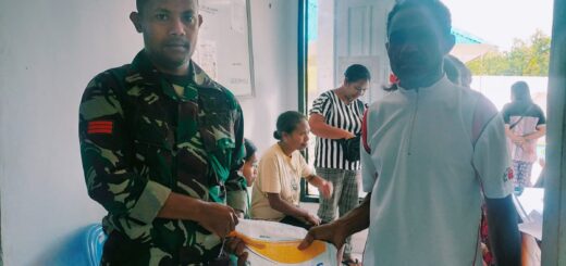 Kehadiran TNI inipun disambut antusias dan suka cita oleh kepala sekolah beserta guru dan puluhan anak-anak yang terlihat begitu senang dan gembira.