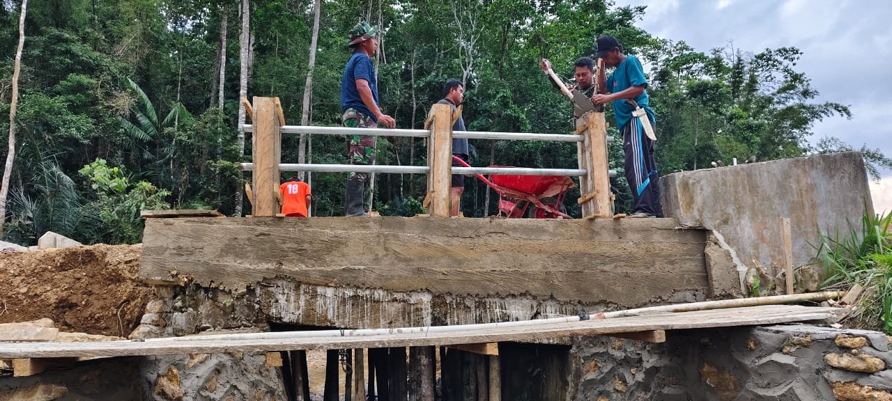 Sementara itu, Perwira Seksi Teritorial Kodim 1431/Bombana, Kapten Inf Sulistianto, menyatakan bahwa progres pembangunan jembatan sudah hampir rampung. “Saat ini pengerjaan telah mencapai sekitar 85 persen. Dengan pemasangan realing ini, kami berharap jembatan bisa segera difungsikan untuk memperlancar akses dan mendukung aktivitas ekonomi warga,” jelasnya.