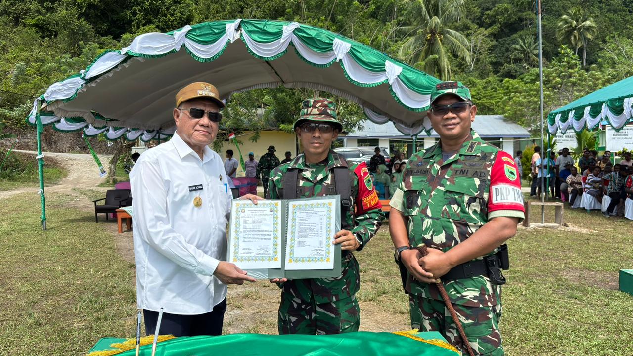Kaimana – Upacara penutupan Program TNI Manunggal Membangun Desa (TMMD) ke-127 resmi dilakukan di lapangan SDN Kampung Marsi, Distrik Kaimana, Kabupaten Kaimana, pada Rabu (11/03/2026). Danrem 182/Jazira Onim, Irwan Budiana, memimpin langsung upacara tersebut sebagai Inspektur Upacara, sementara Renno Lambajang menjabat sebagai Komandan Upacara.