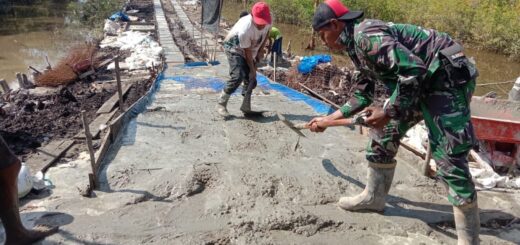 Warga Desa Talio Turun Tangan Aduk Semen, Bantu Satgas TMMD Cor Jalan