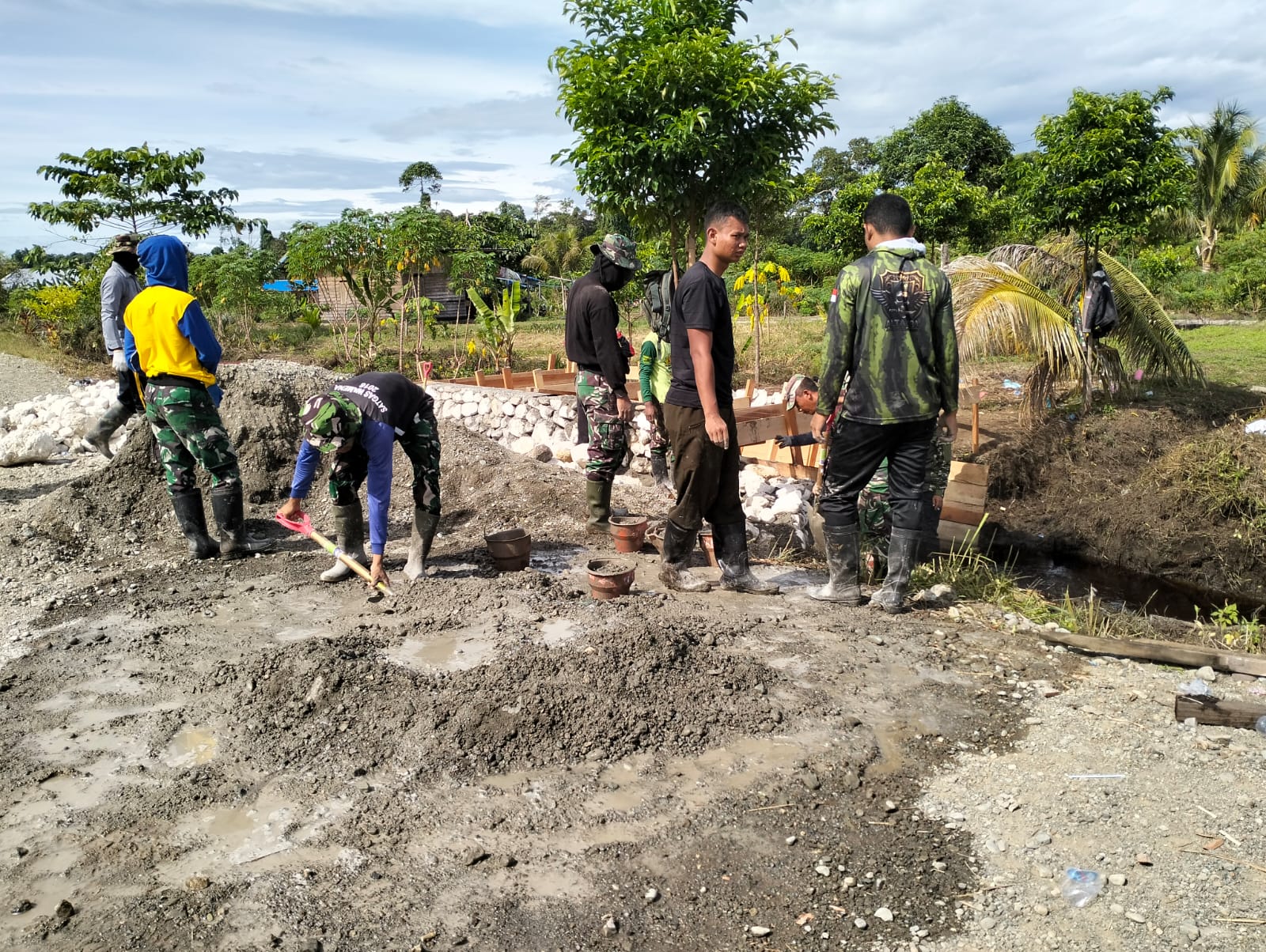 Partisipasi aktif dari masyarakat ini menjadi contoh nyata dari kemitraan antara TNI dan masyarakat. Kerja sama yang solid ini tidak hanya mempercepat pelaksanaan proyek, tetapi juga mencerminkan semangat gotong royong yang masih kental di kalangan warga.
