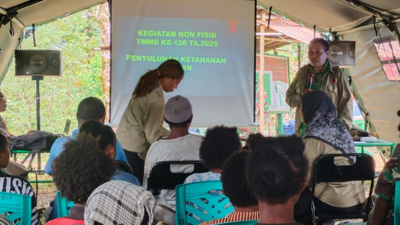 Boven Digoel – Antusiasme warga Kampung Waropko, Distrik Waropko, Kabupaten Boven Digoel terlihat tinggi saat mengikuti kegiatan penyuluhan ketahanan pangan yang digelar Satgas TMMD ke-126 Kodim 1711/BVD bekerja sama dengan Dinas Ketahanan Pangan, Senin (13/10/2025).