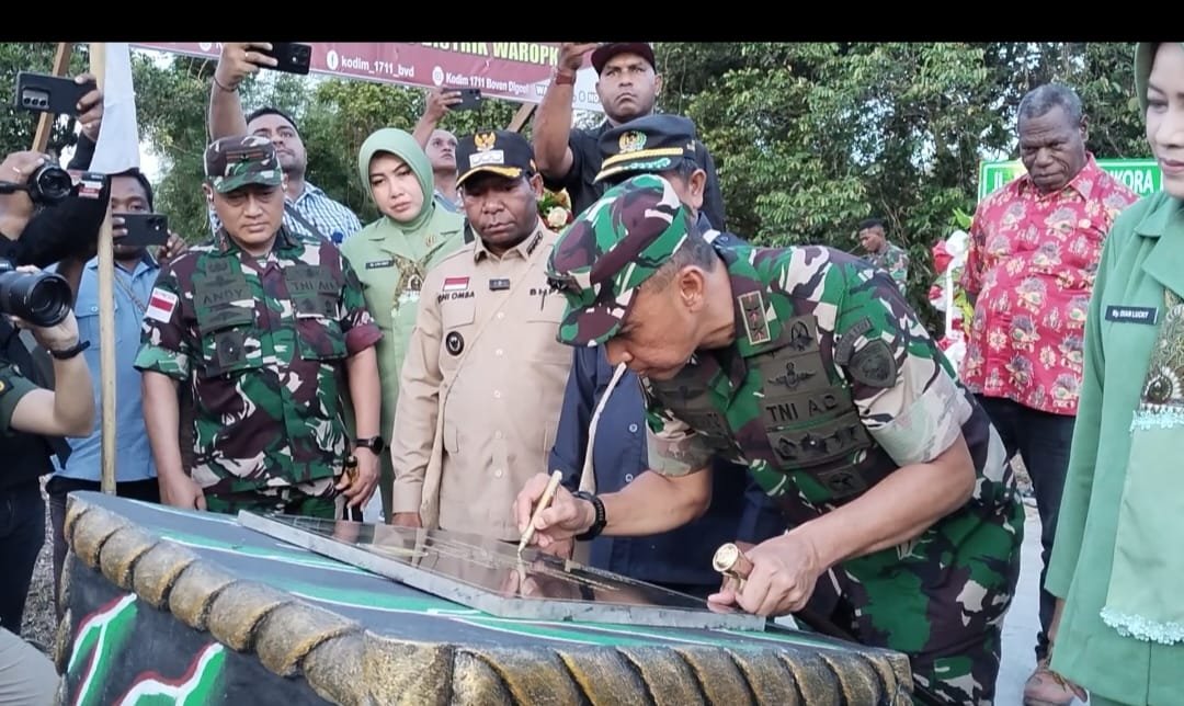 Warisan Abadi TMMD 126: Pangdam XXIV/Mandala Trikora Resmikan Hasil Pembangunan dengan Penandatanganan Prasasti di Waropko