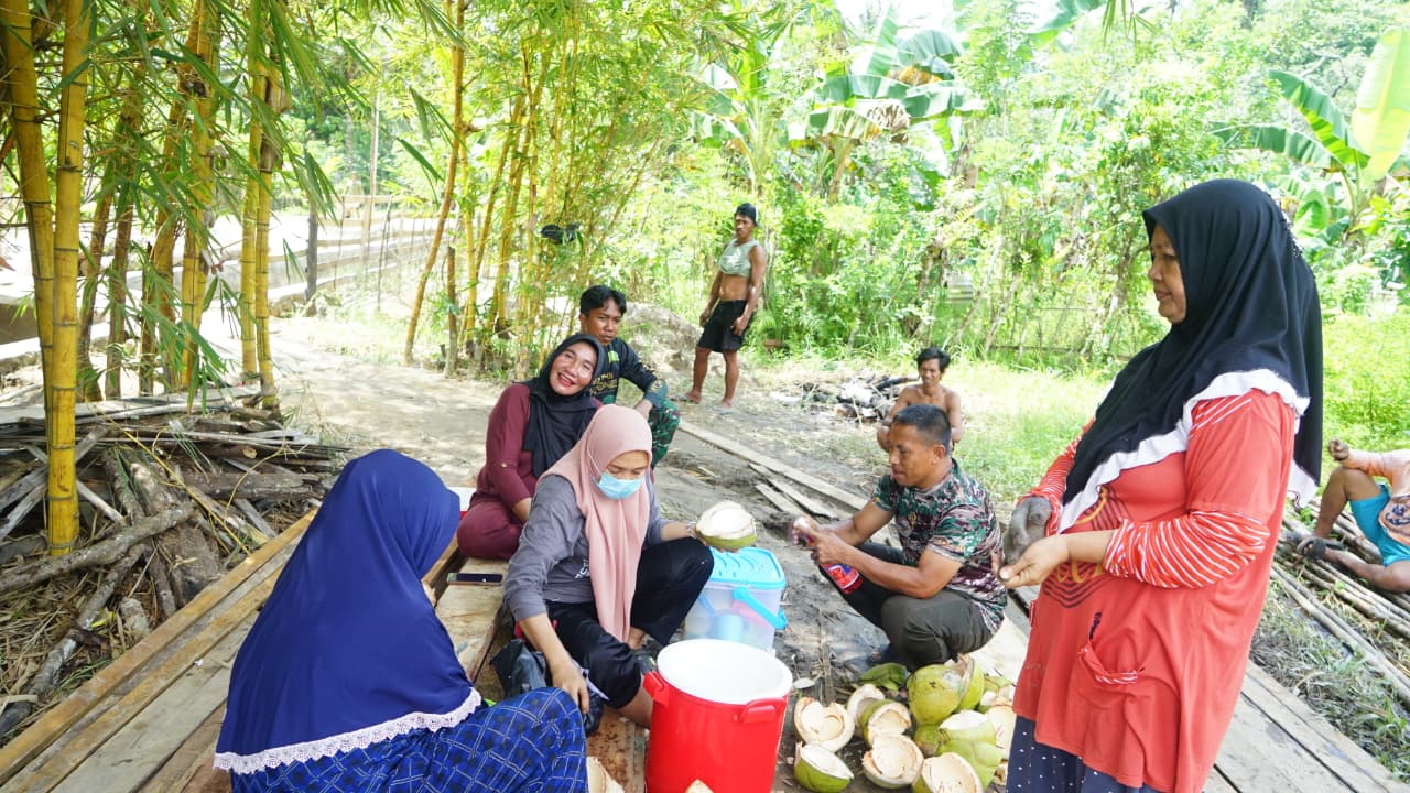 Wujud Nyata Dukungan Masyarakat, Ibu-Ibu Sambuli Sajikan Es Kelapa Muda untuk Satgas TMMD