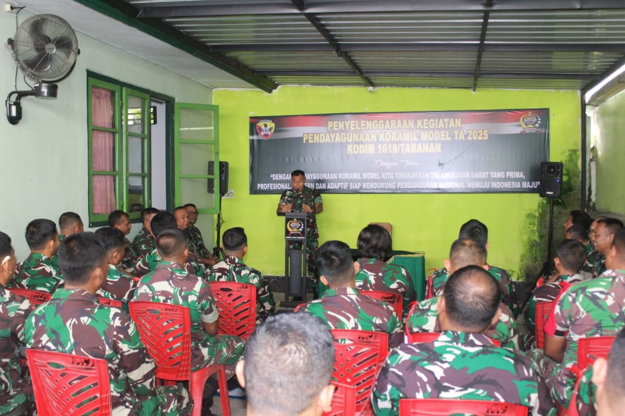 Tabanan – Dandim 1619/Tabanan Letkol Inf Trijuang Danarjati, S.A.P., M.I.P., secara resmi membuka kegiatan Pendayagunaan Koramil Model Tahun Anggaran 2025, dengan mengusung tema “Dengan pendayagunaan Koramil Model kita tingkatkan TNI AD yang prima, profesional, modern dan adaptif siap mendukung pembangunan nasional menuju Indonesia maju,”Rabu (29/10/2025)